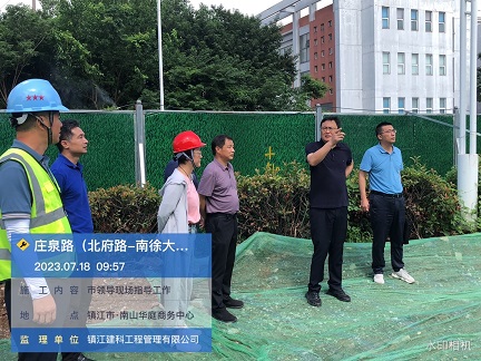 2023年7月18日上午,鎮(zhèn)江市政府副市長(zhǎng)黃春年帶領(lǐng)潤(rùn)州區(qū)政府、市住建局、市城管局、市干道辦領(lǐng)導(dǎo)到正在建設(shè)中的莊泉路(北府路-南徐大道)現(xiàn)場(chǎng)實(shí)地調(diào)研道路工程建設(shè)工作,項(xiàng)目監(jiān)理部成員全程參加現(xiàn)場(chǎng)調(diào)研活動(dòng)。